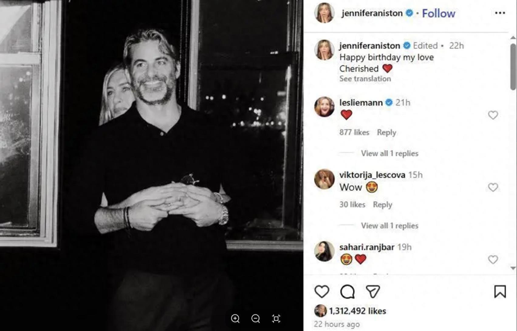 好消息!《老友记》中"瑞秋"的扮演者詹妮弗·安妮斯顿官宣新恋情啦!她在个人社交媒体上分享了与催眠治疗师兼作家吉姆·柯蒂斯的甜蜜合照,并为他庆生,幸福之情溢于言表。