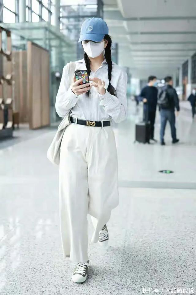 46岁的殷桃,把初春穿搭玩明白了 浅蓝细条纹衬衫+米白阔腿裤,用黑色细腰带掐出腰线,再配上棒球帽和双麻花辫,瞬间减龄十岁。 帆布鞋+托特包的组合,让整套造型松弛又有活力,完全看不出真实年龄。 这种“上松下紧+腰线突出”的穿法,对微胖、梨形身材也特别友好,普通人也能轻松抄作业。
